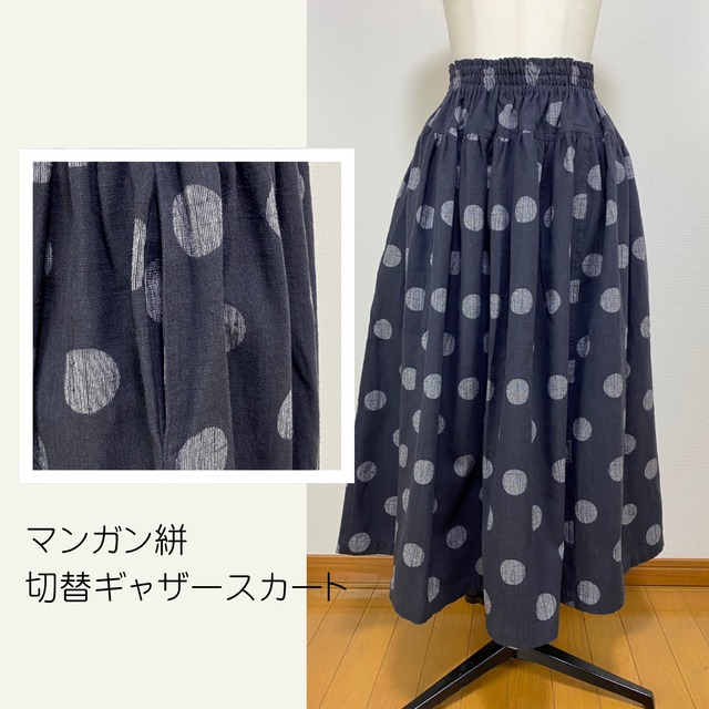 245049 切替ギャザースカート マンガン絣 ドット大