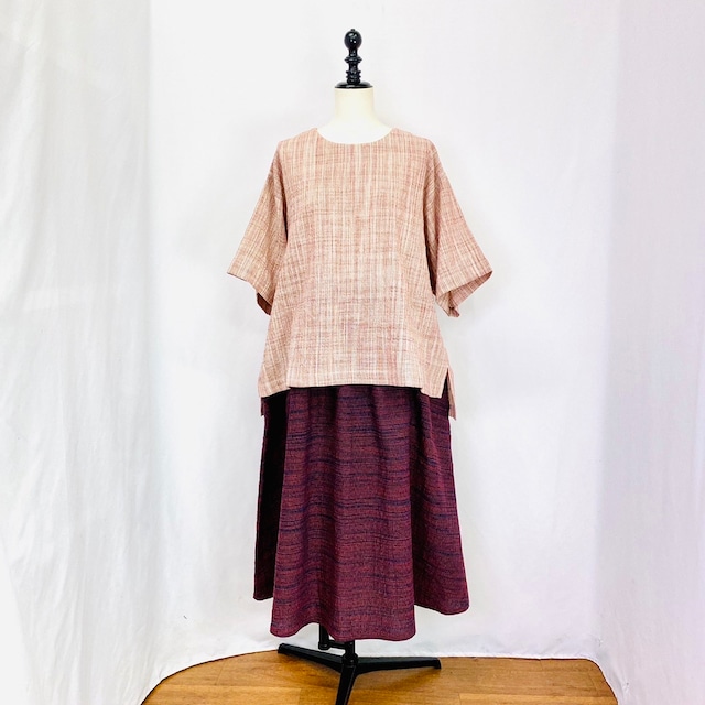 245043 切替ギャザースカート 安曇野染絣 大島柄