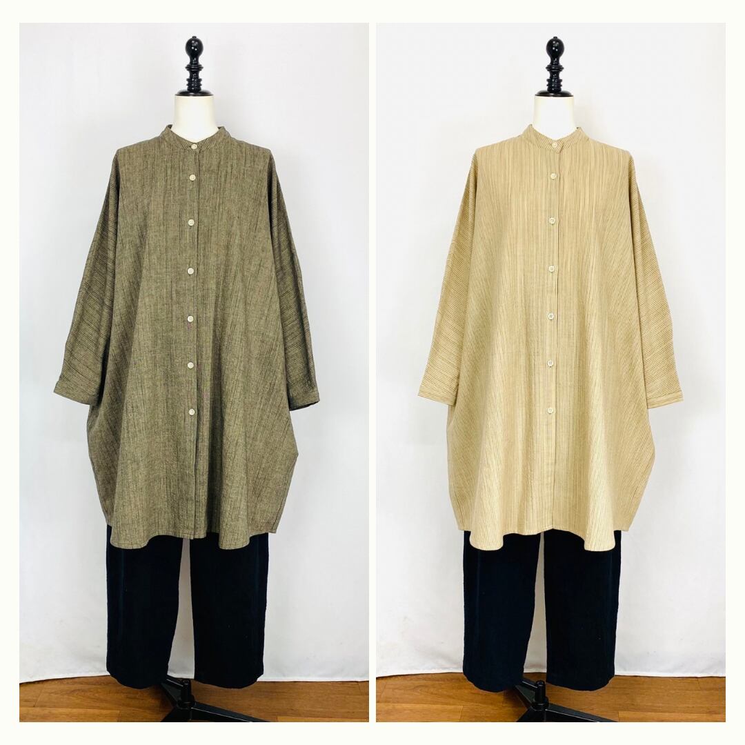 252051 ドルマンスリーブのロングブラウス 2カラー 遠州織物 逆スラブストライプ うすで