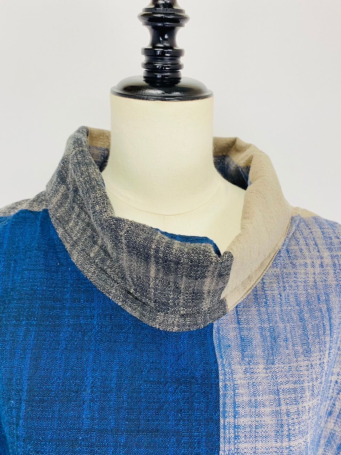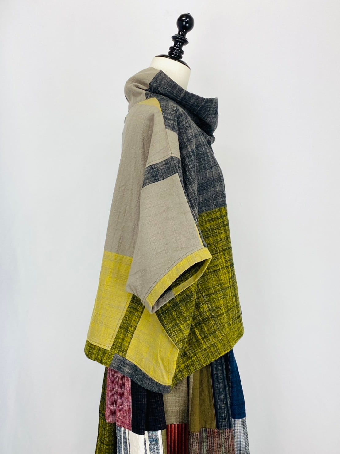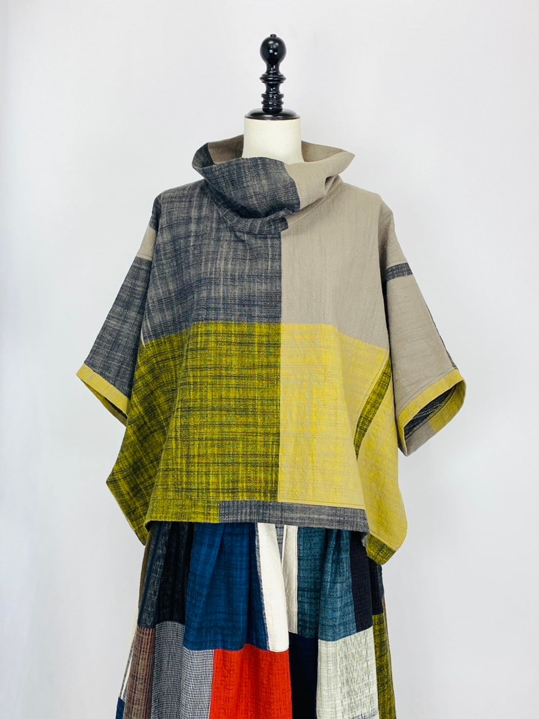 224011 ロールネック切替えプルオーバー 2カラー 遠州織り 逆スラブ大格子