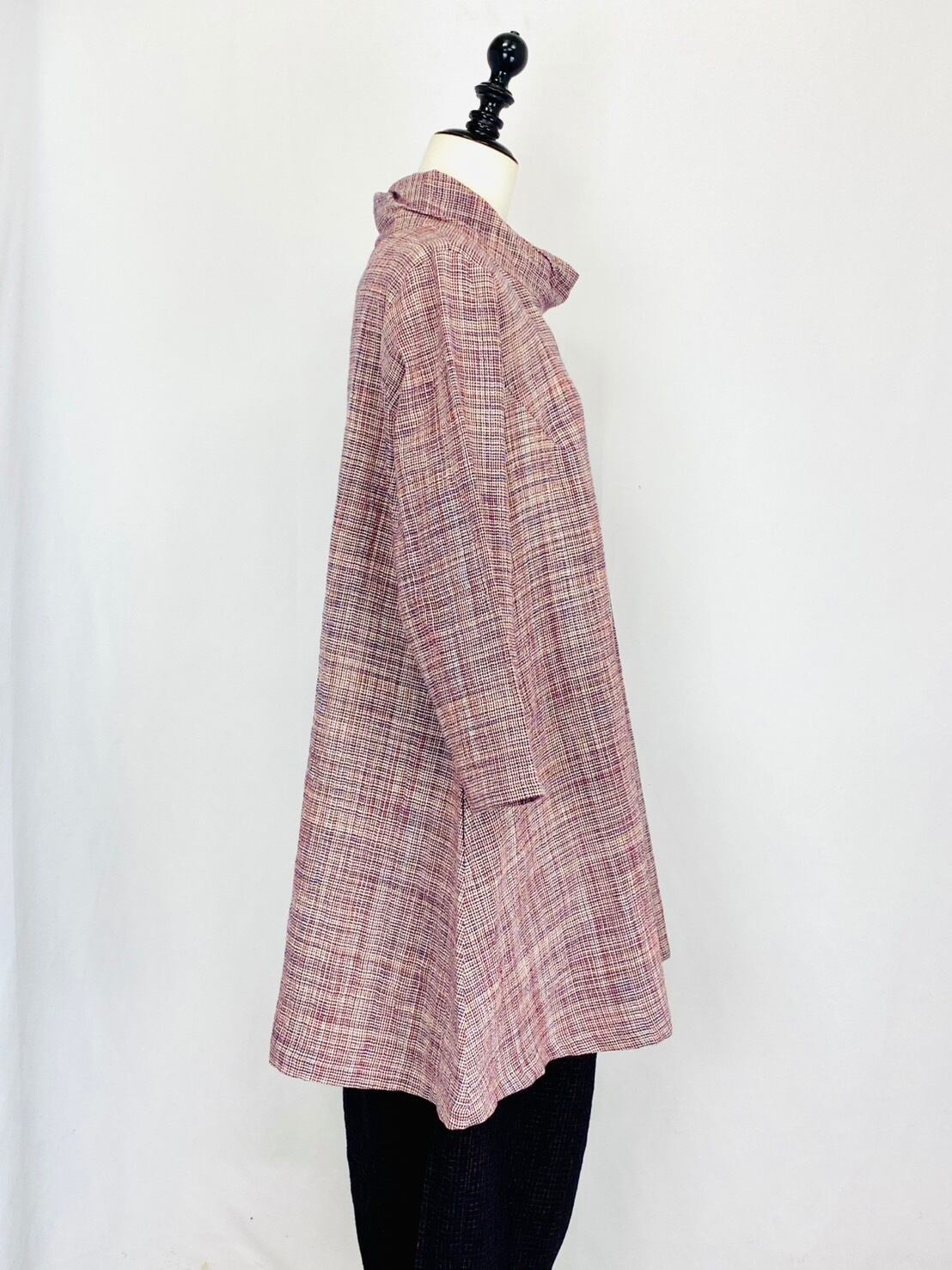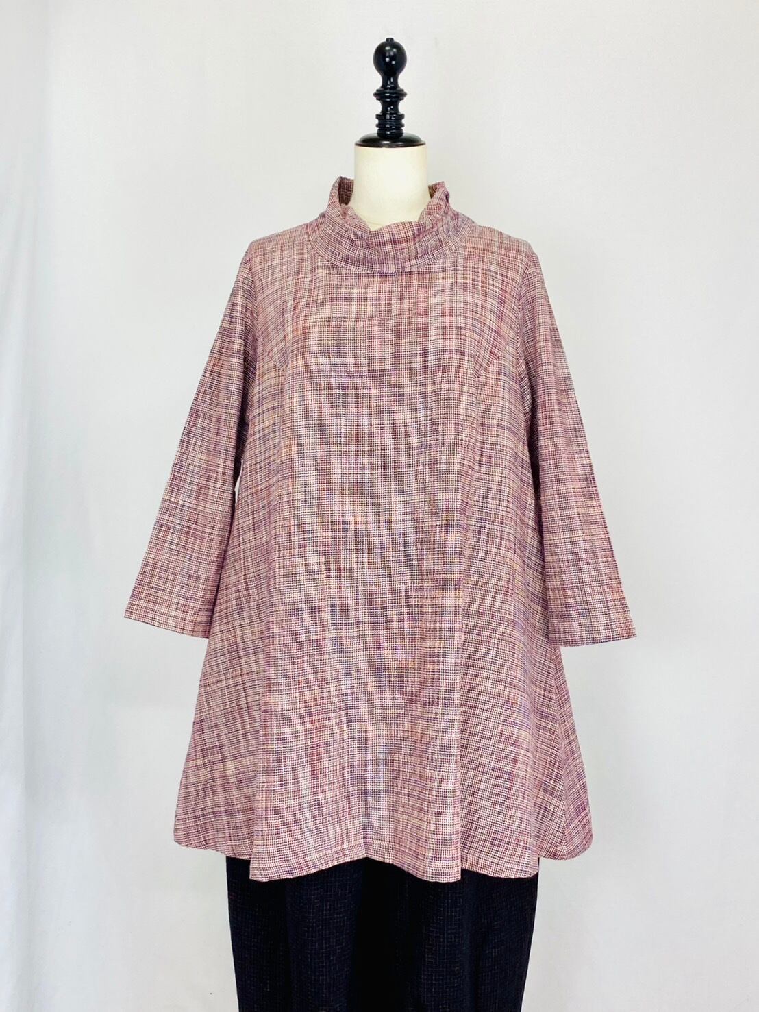 252101 ひねり襟のチュニック 2カラー 遠州織物 うすで縞
