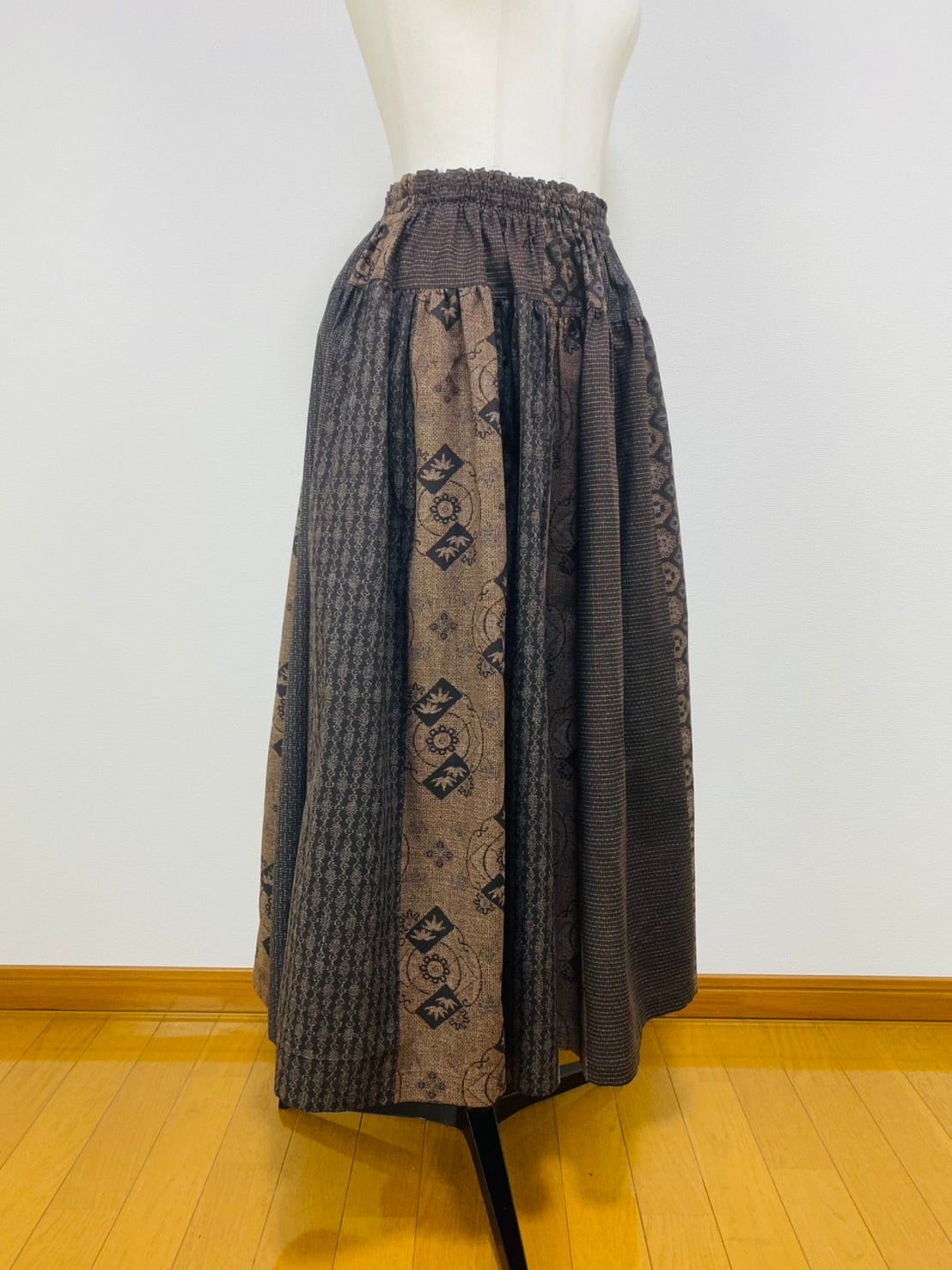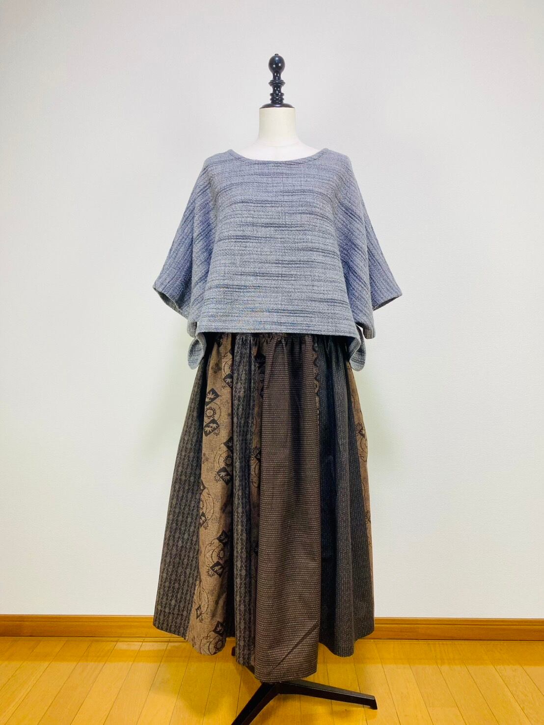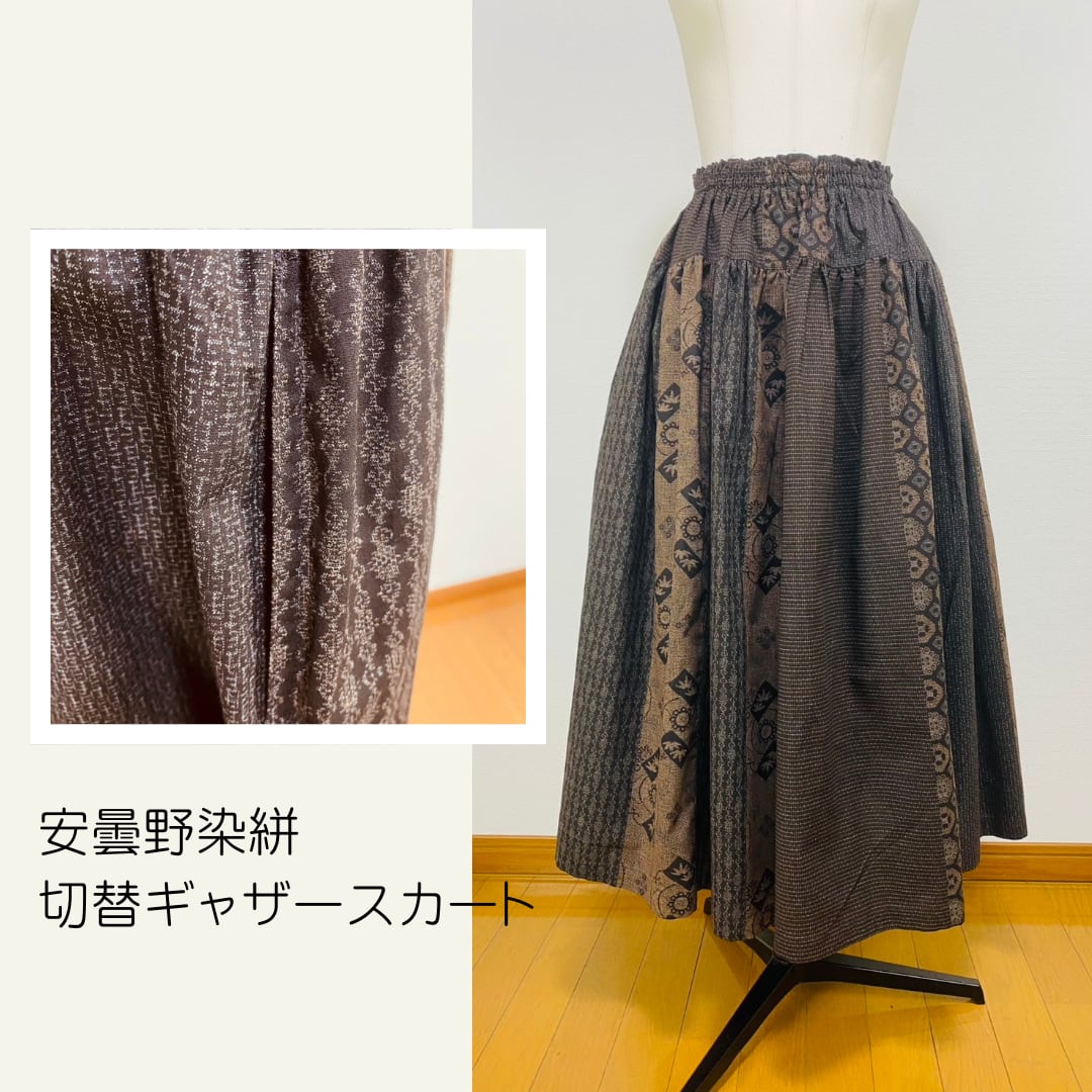 245043 切替ギャザースカート 安曇野染絣 大島柄