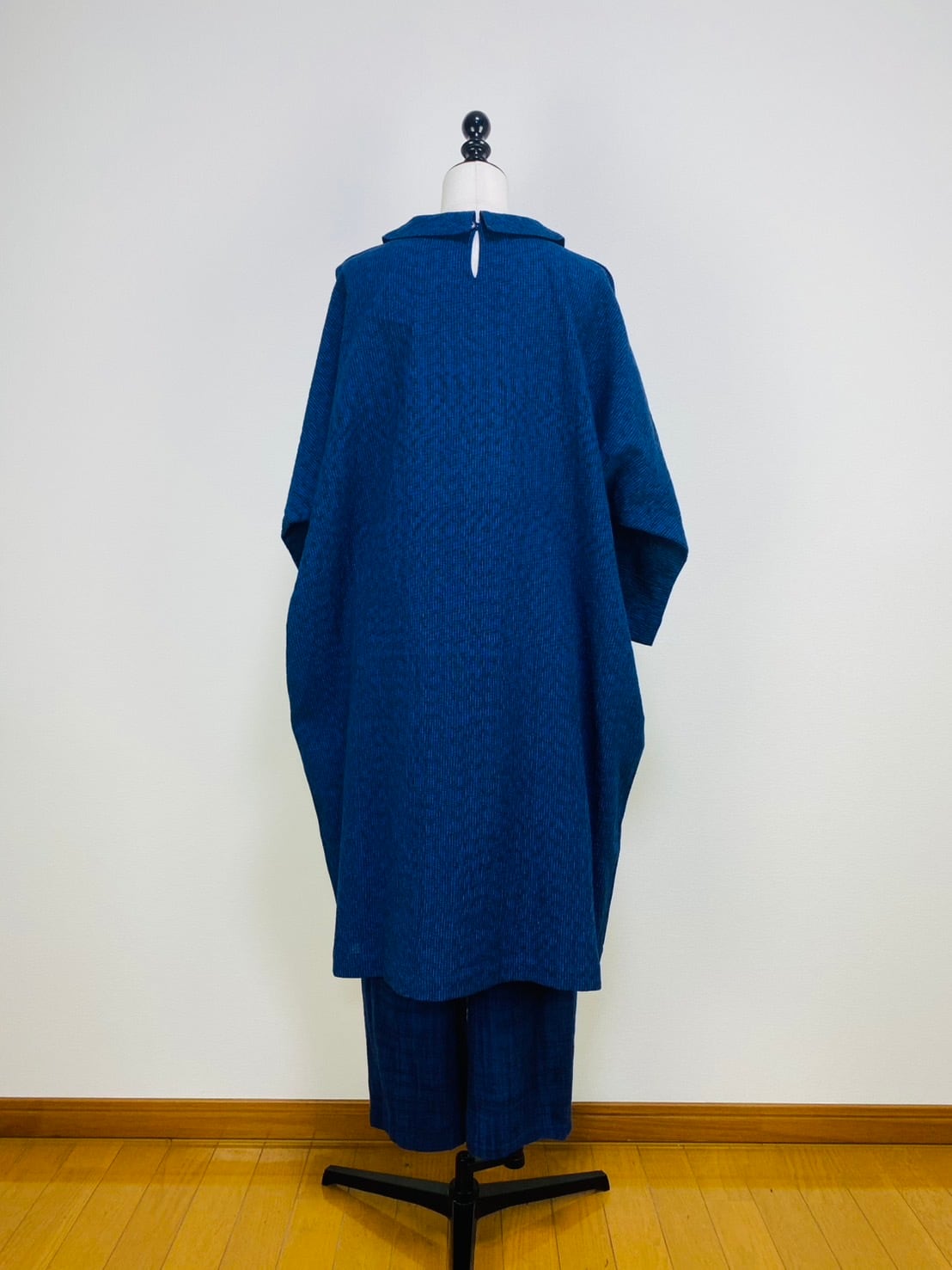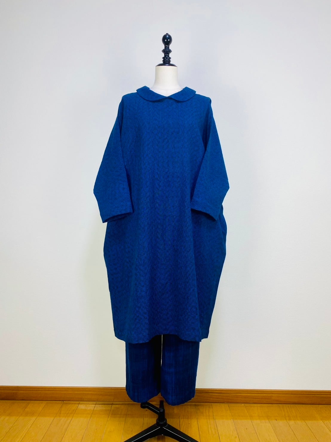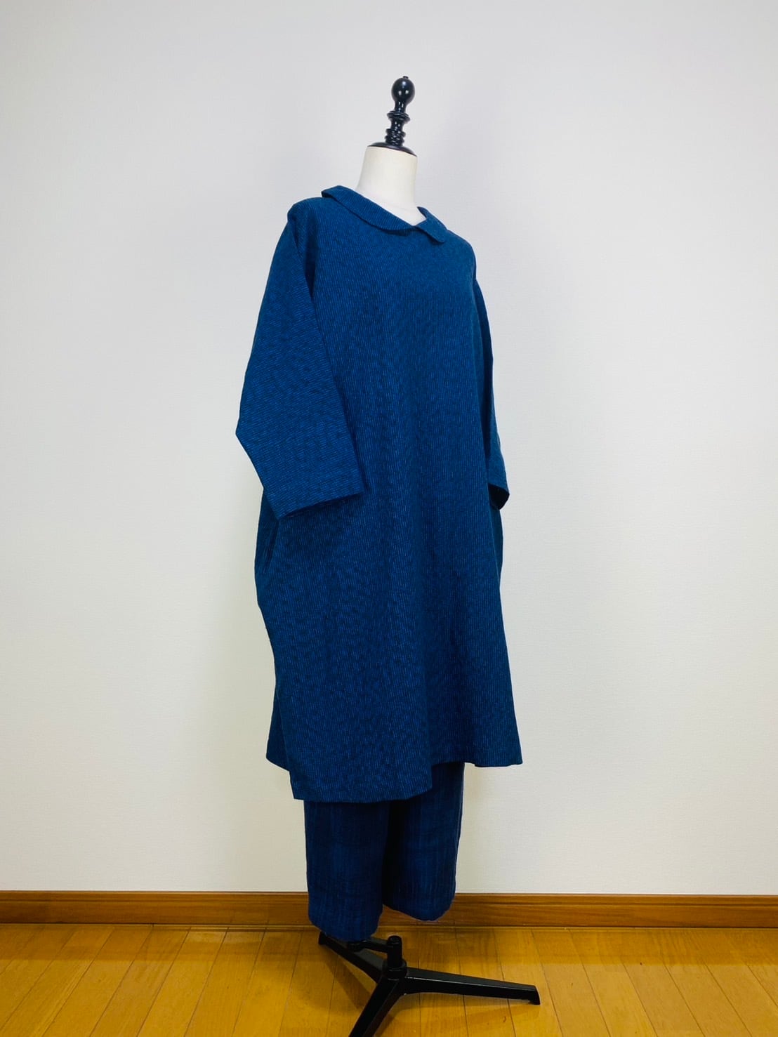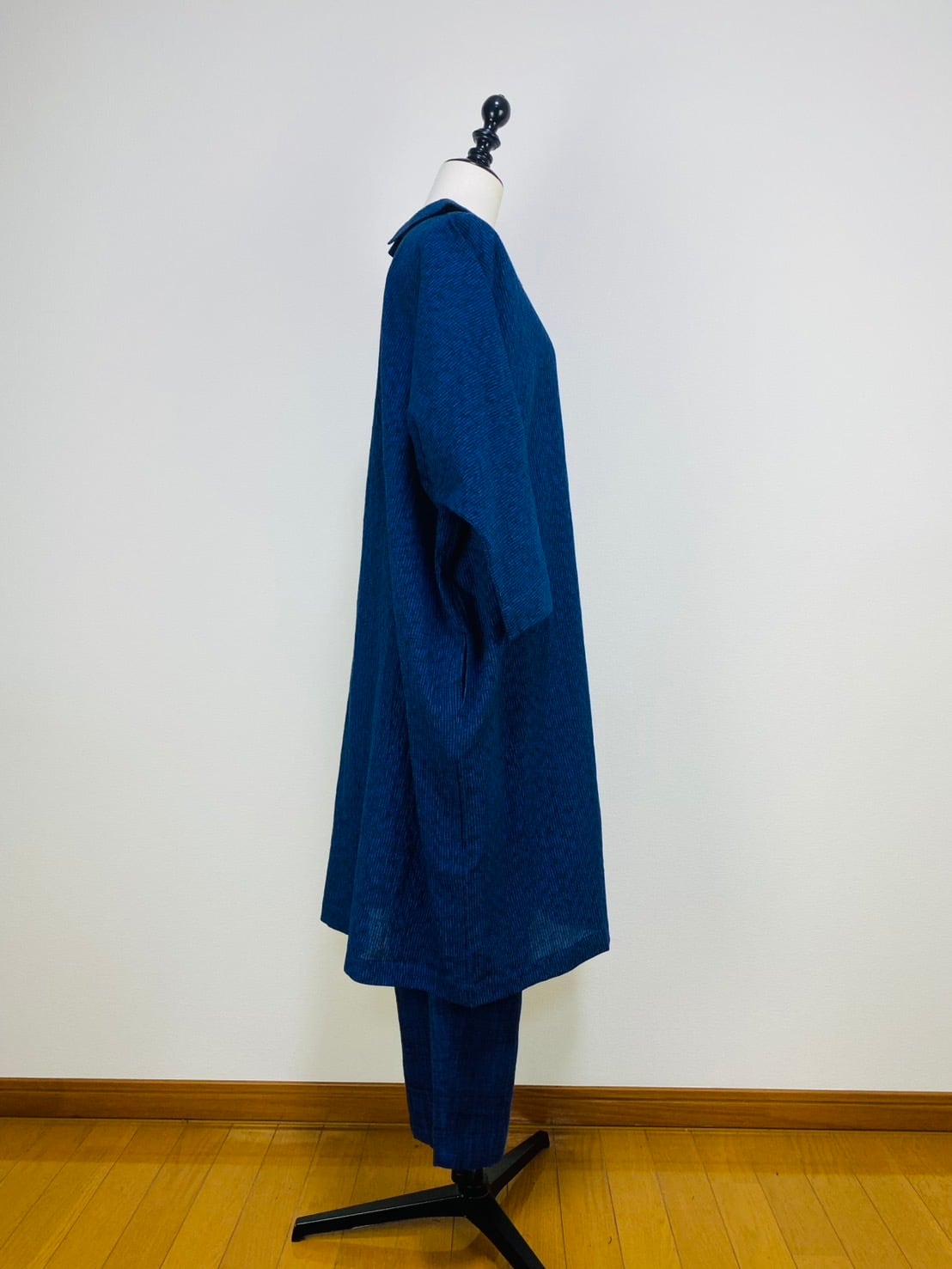 252021 ショールカラーのコクーンワンピース 遠州織物 みじん絣楊柳