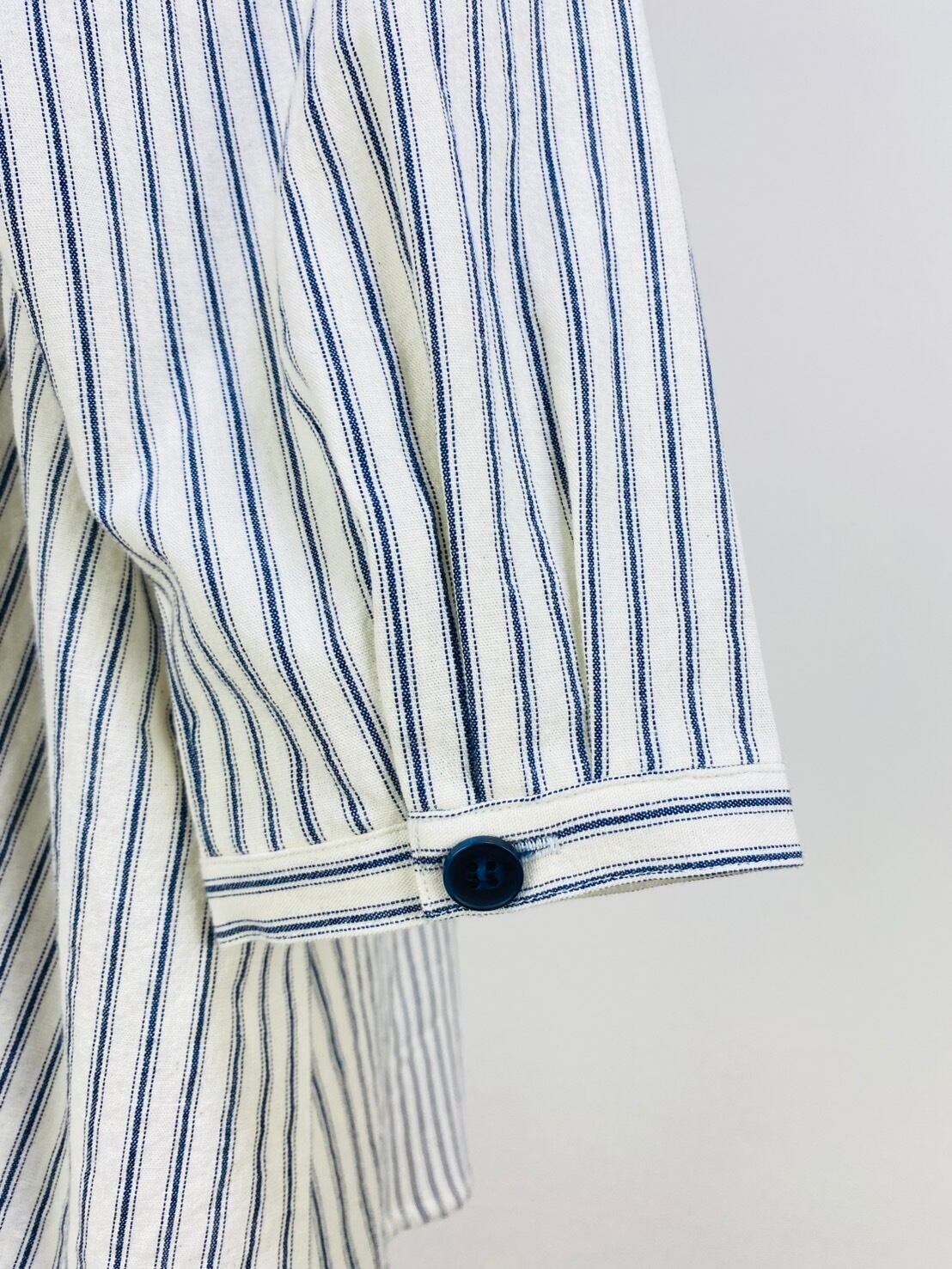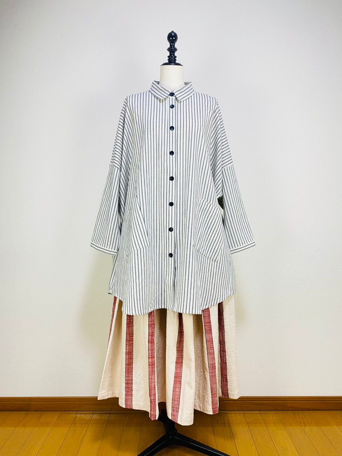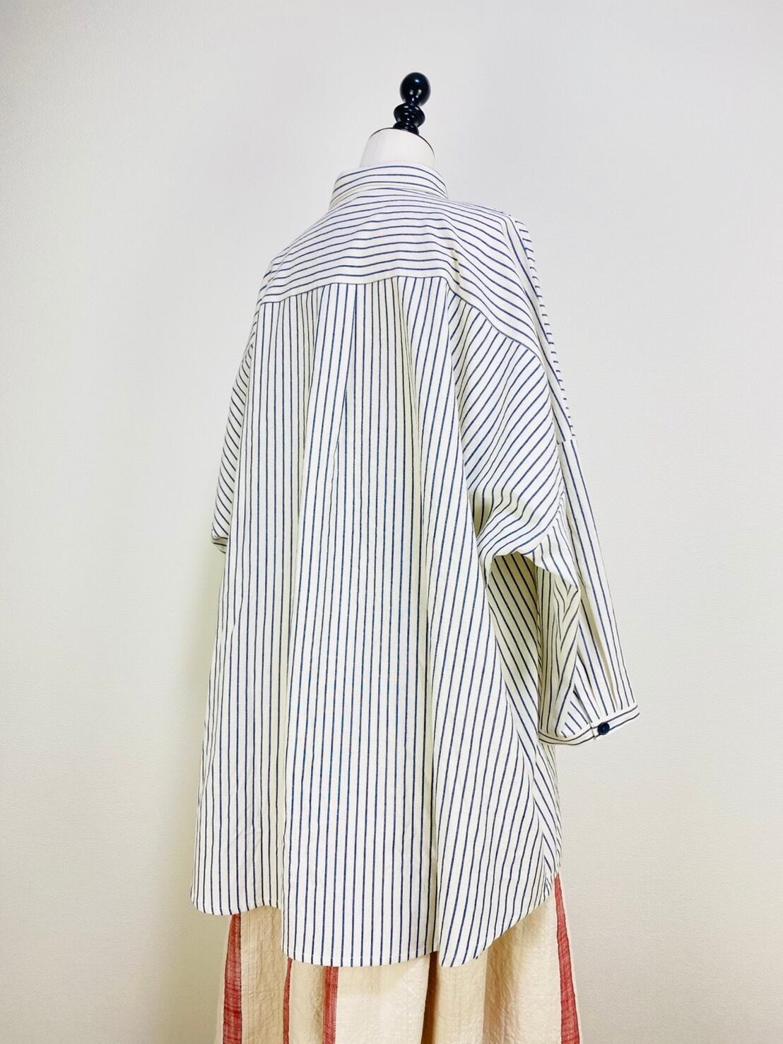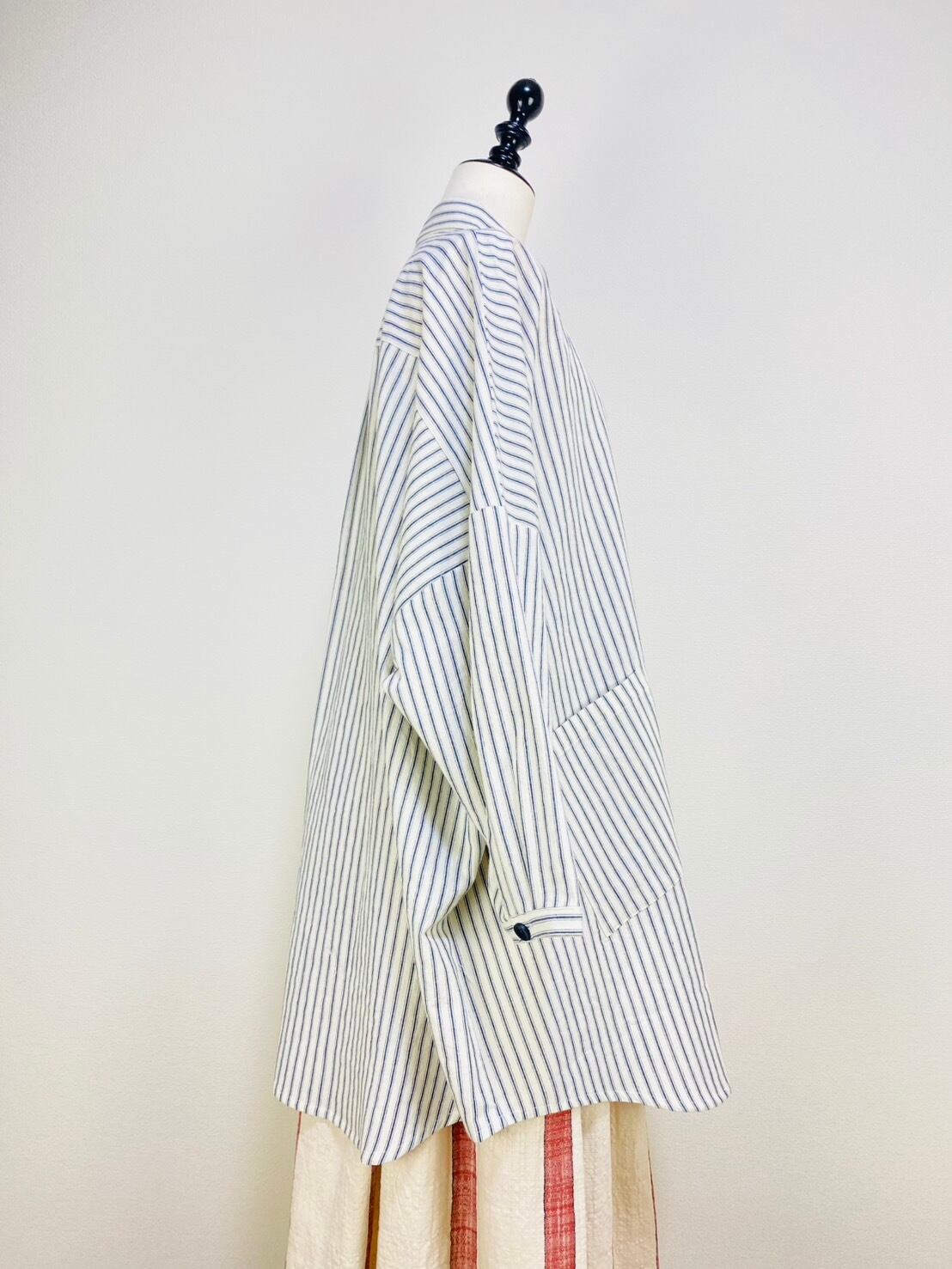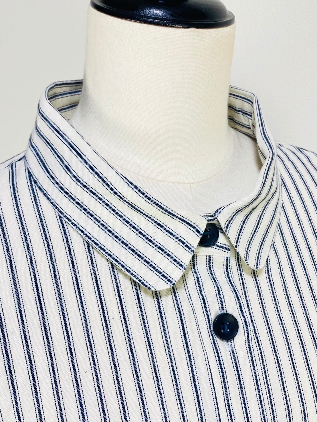 263018 貼り付けポッケのビッグブラウス 岡山産インディゴストライプ