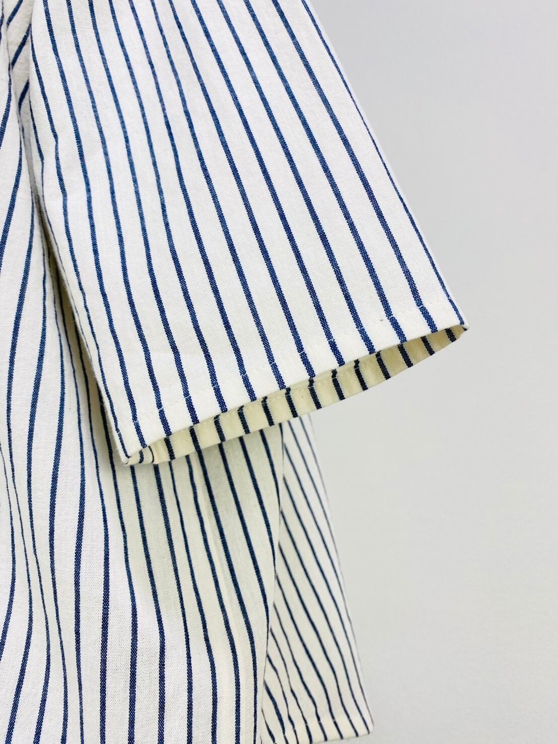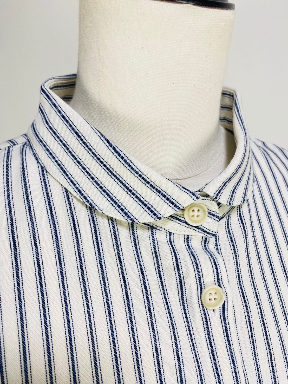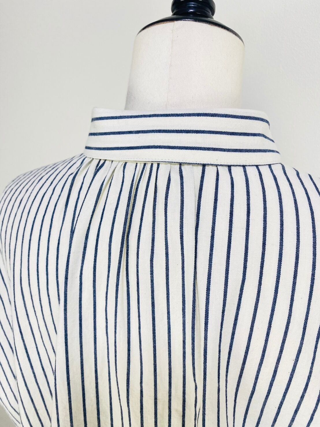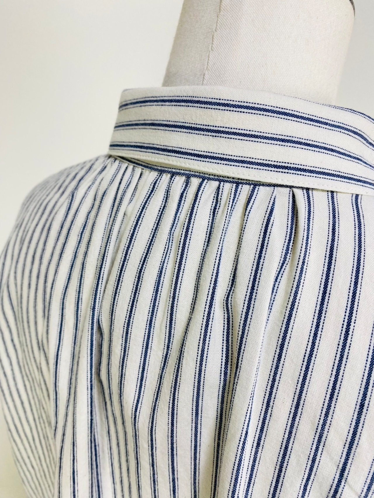 SU19108 丸襟ゆったりブラウス 7分袖 2柄 岡山インディゴストライプ
