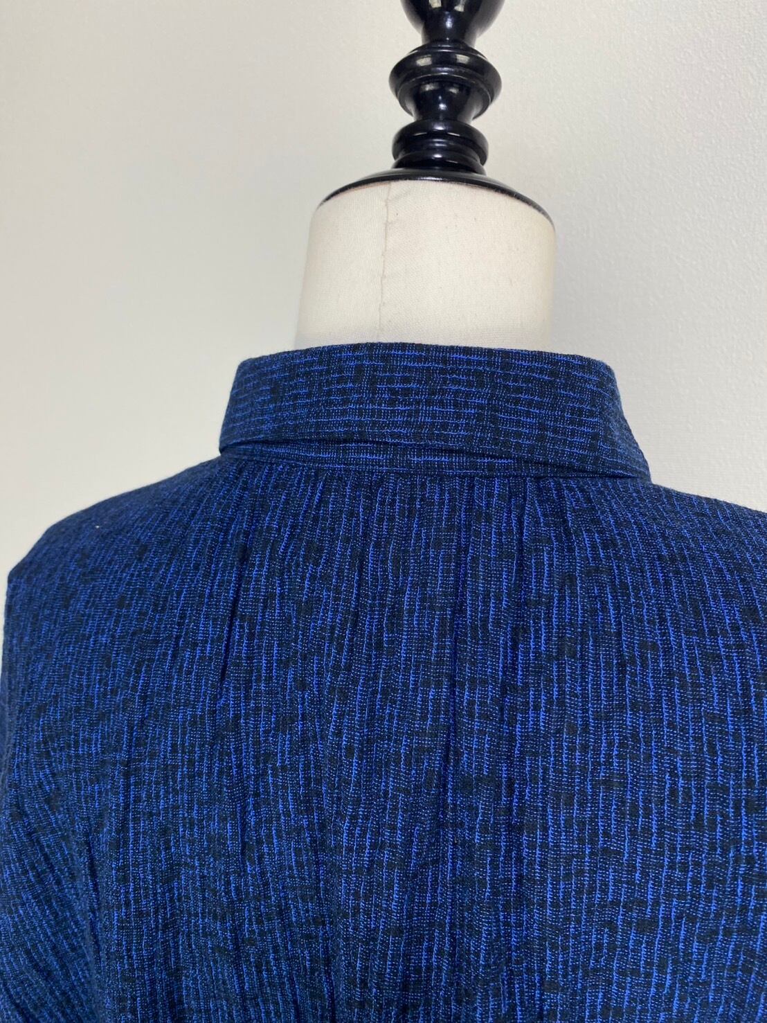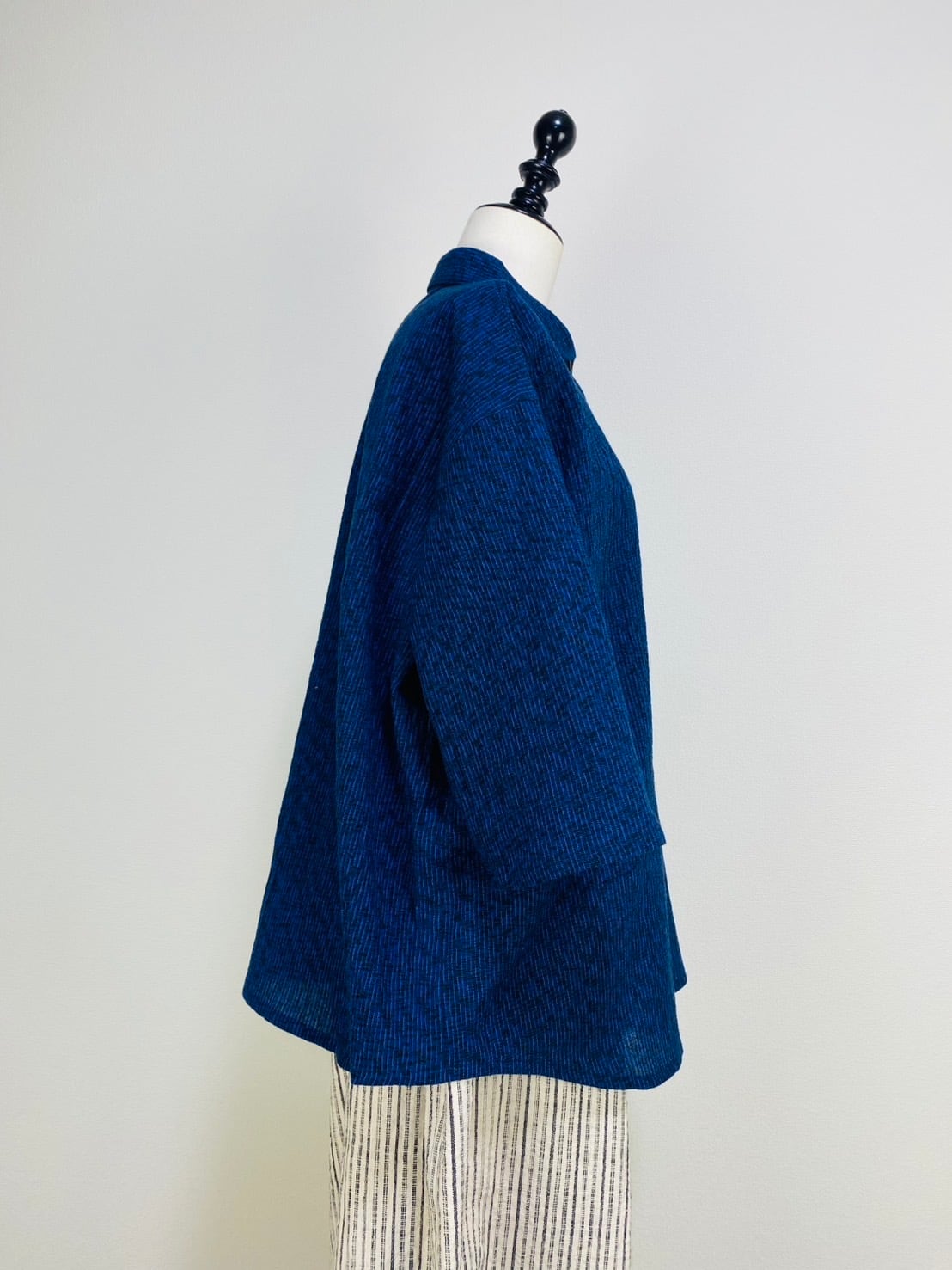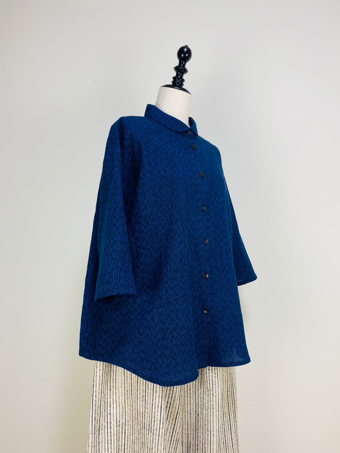 SU19101 丸襟ゆったりブラウス 遠州織物 紺 たてよこみじん絣楊柳