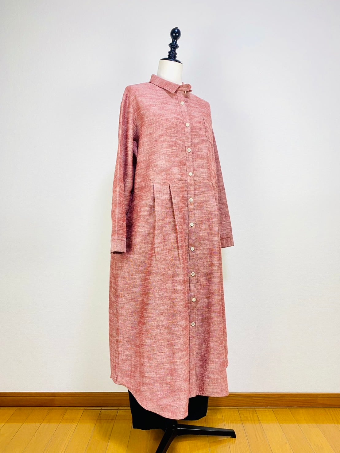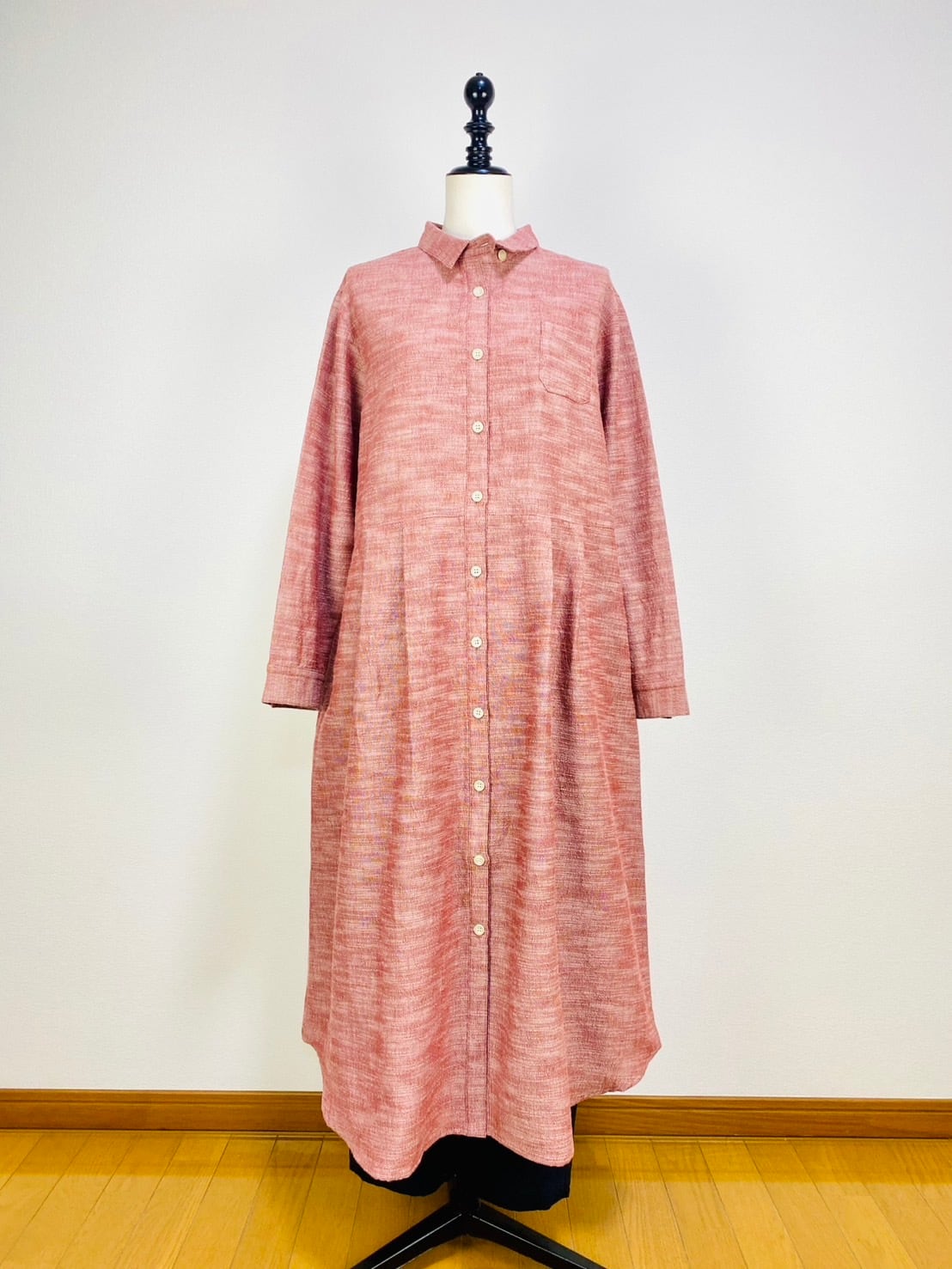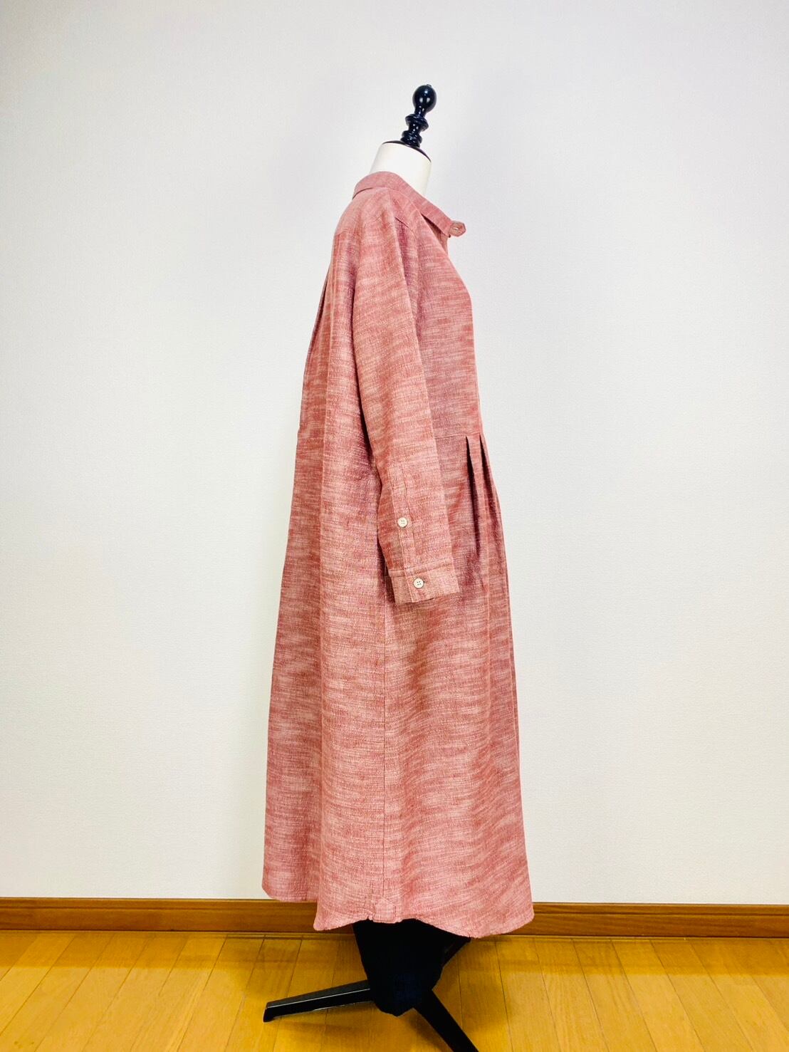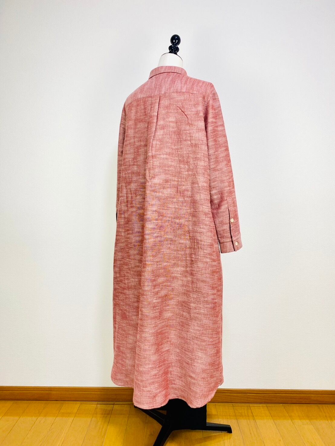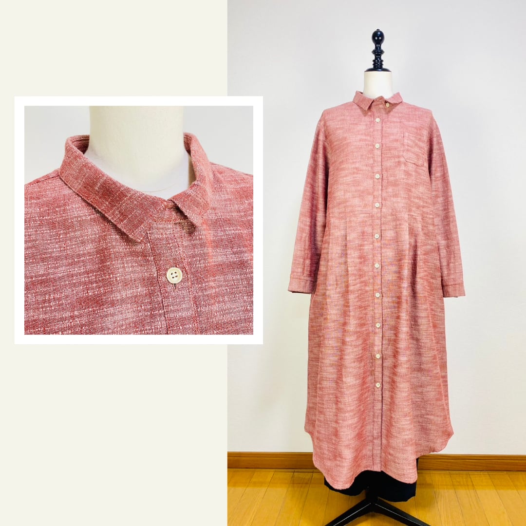 222131 シャツワンピース 赤ベージュ 遠州織物 逆スラブ