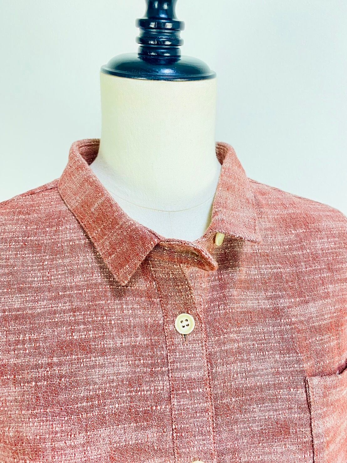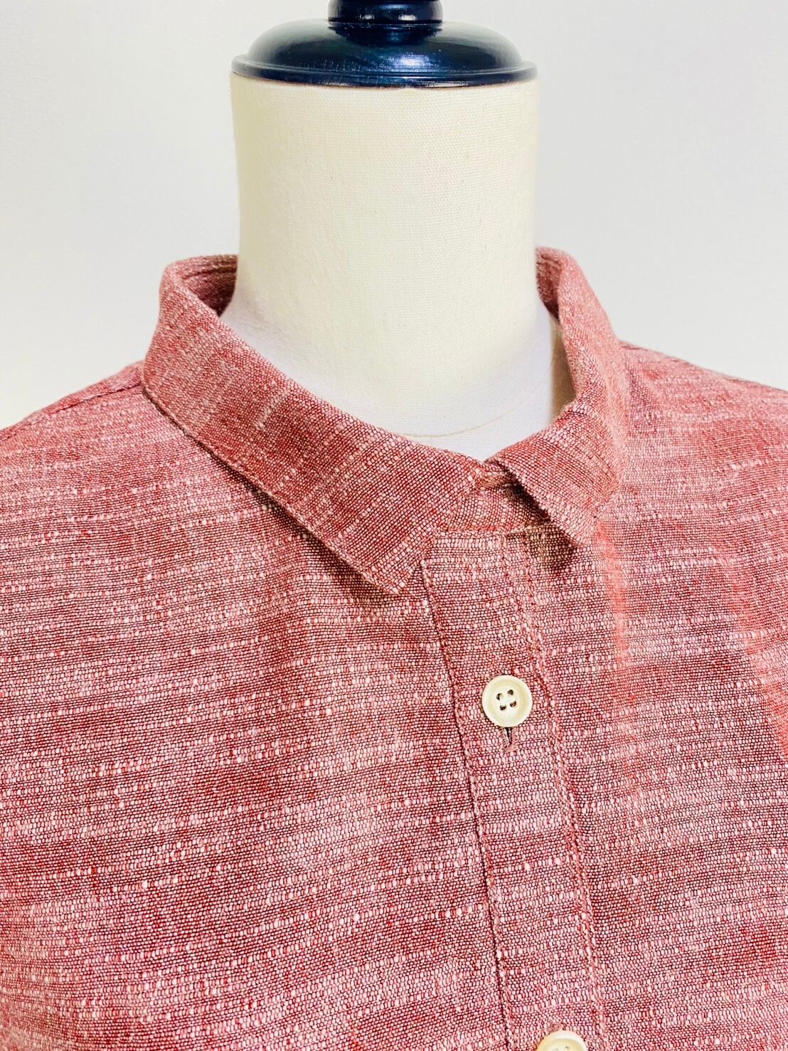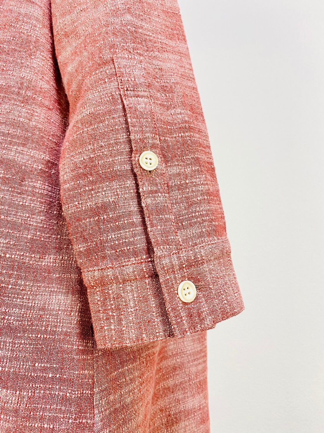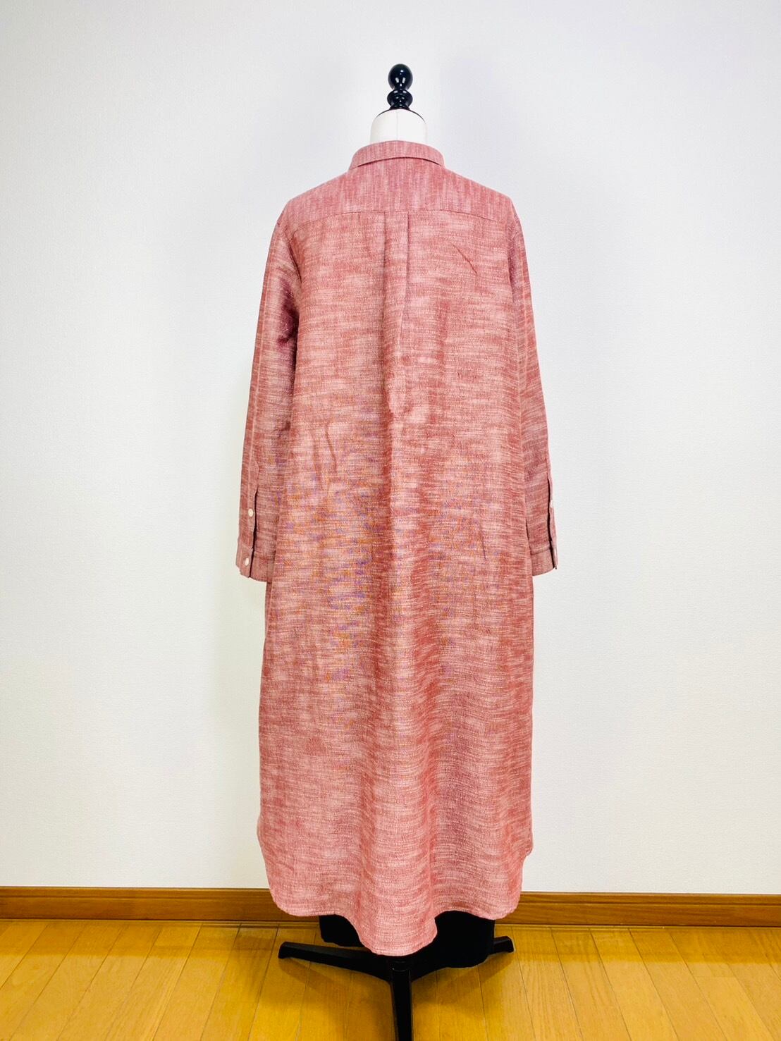 222131 シャツワンピース 赤ベージュ 遠州織物 逆スラブ