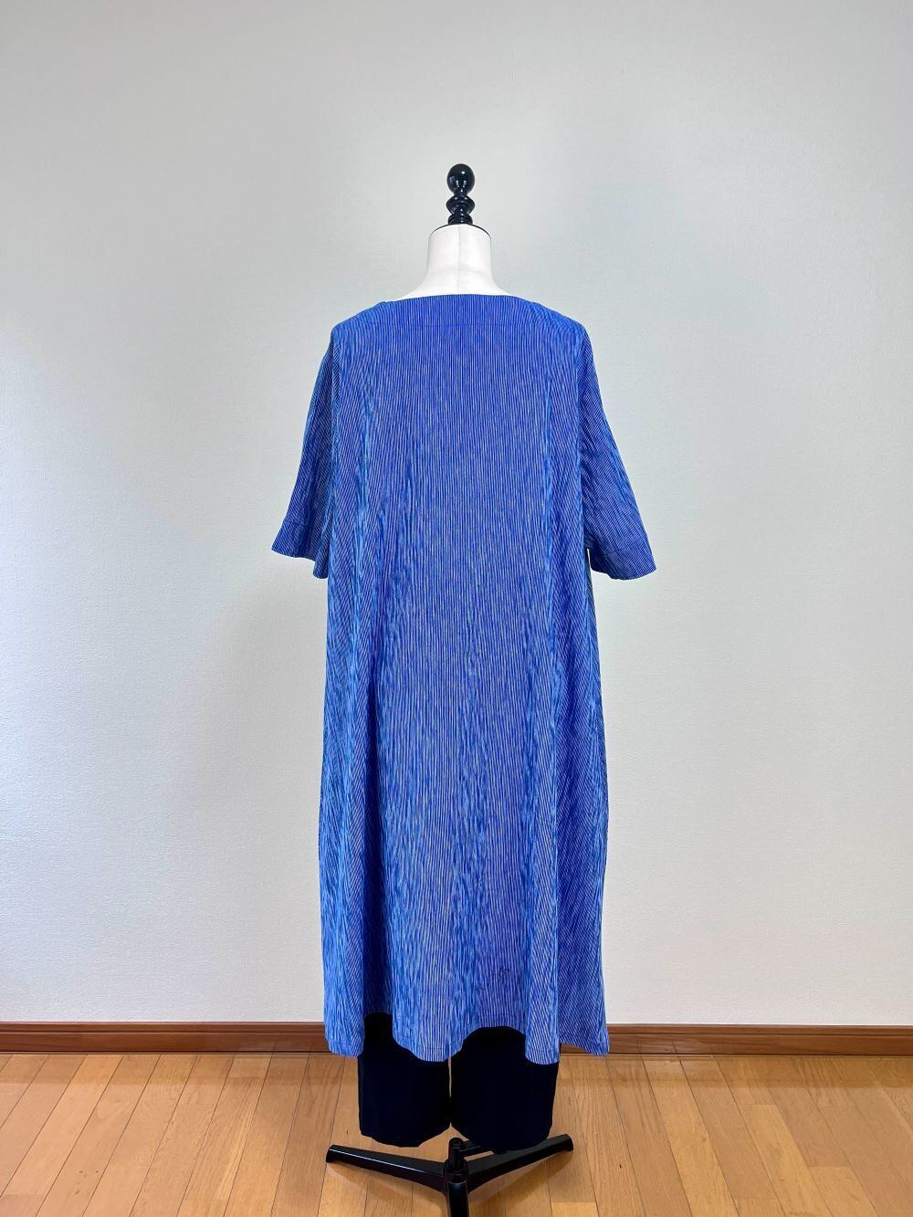 すっきりとしたVネックのシンプルなAラインのワンピースです。