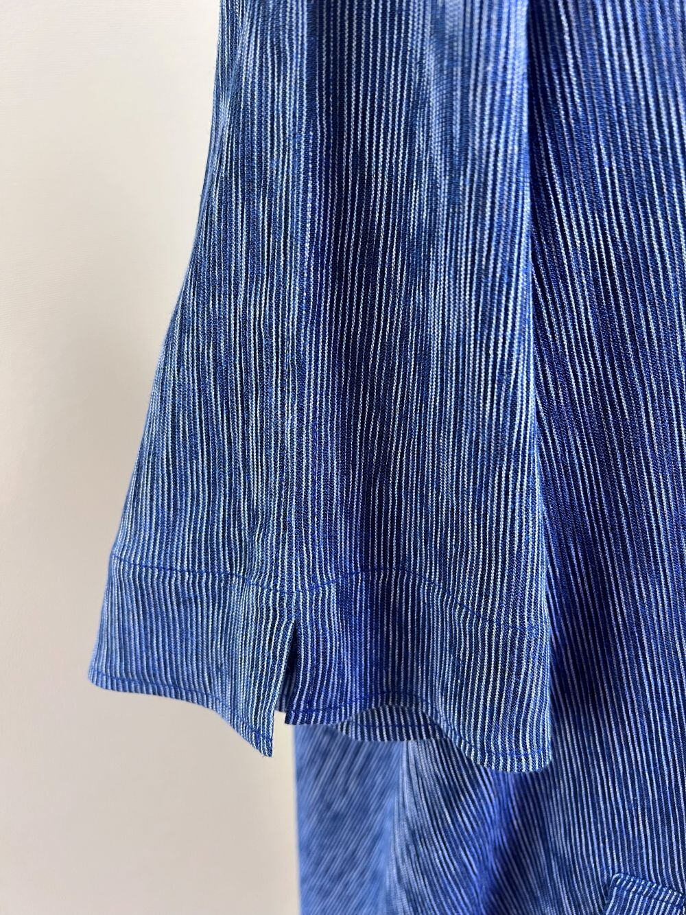 糸の収縮により、ストライプ柄にゆらぎが生じ、唯一無二なイメージを演出しています。