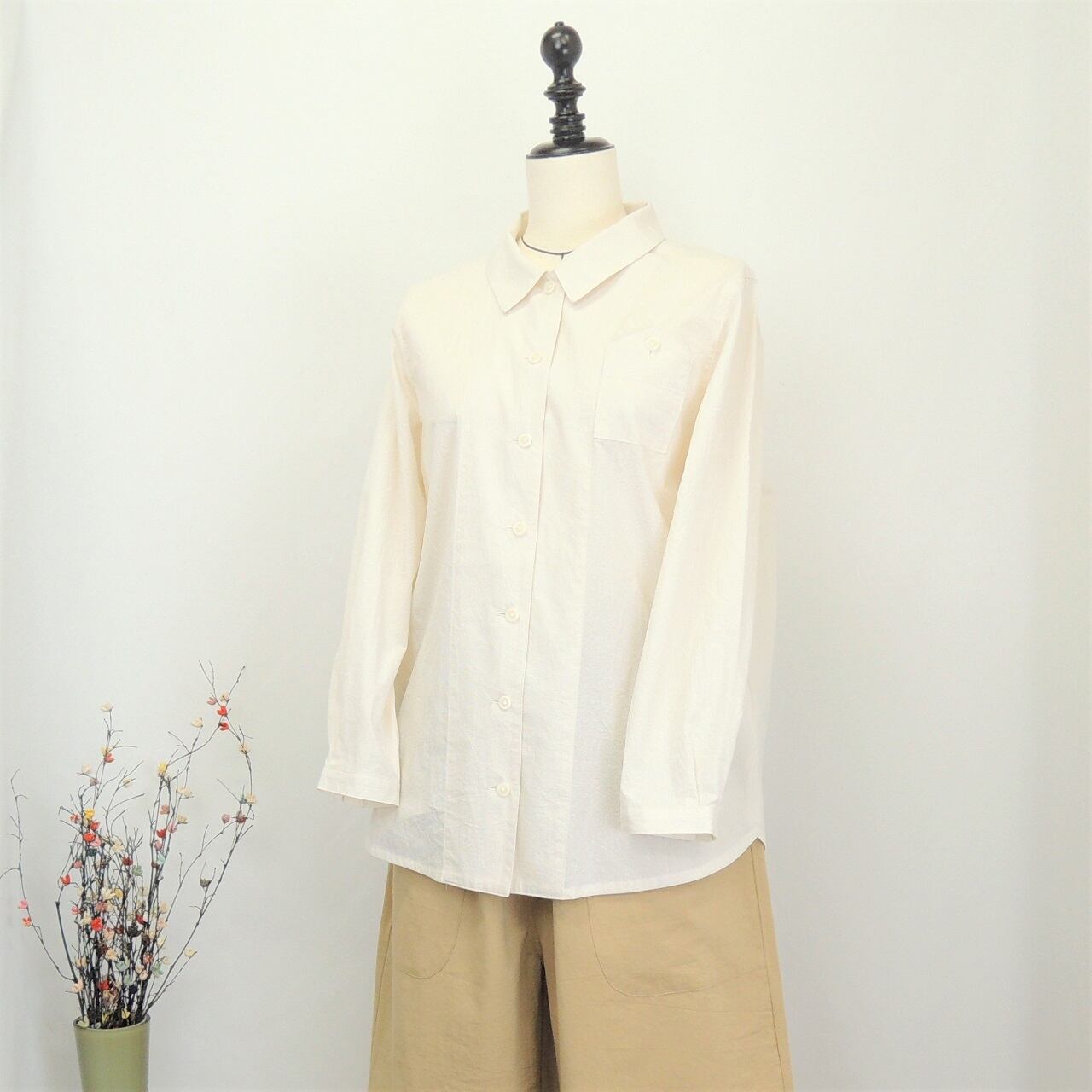 何にでも合わせやすいプレーンな長袖のブラウスです。