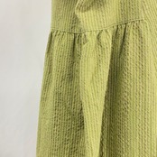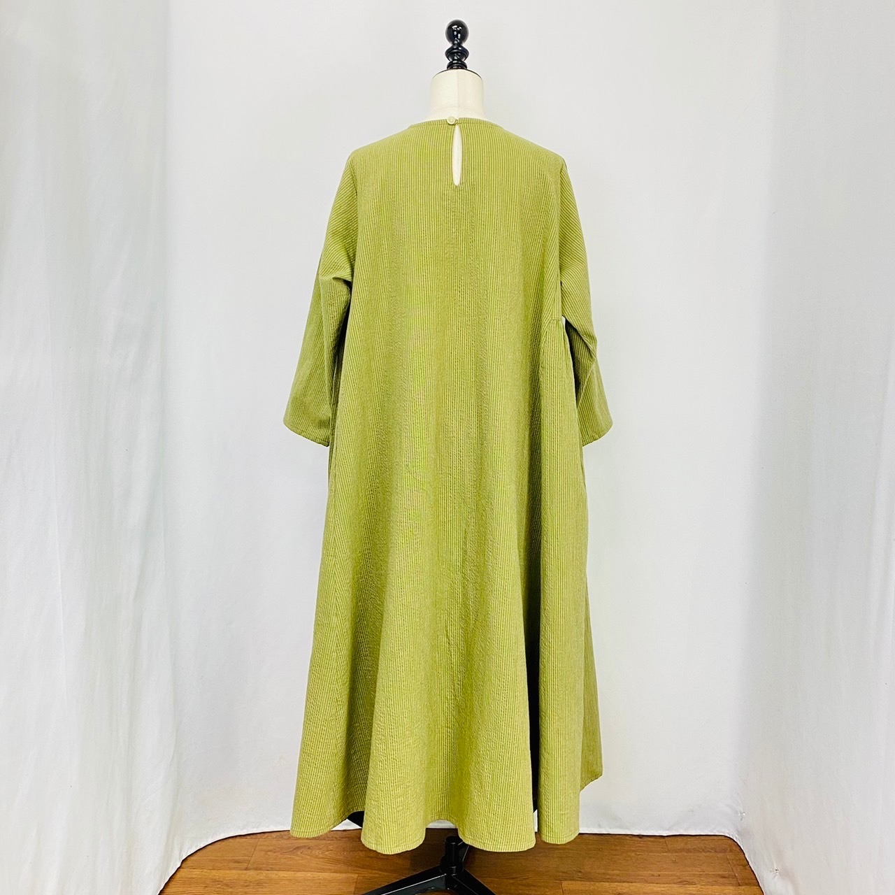 足首まである着丈と、胸回りのギャザーで体のラインを気にせず着ることができます。