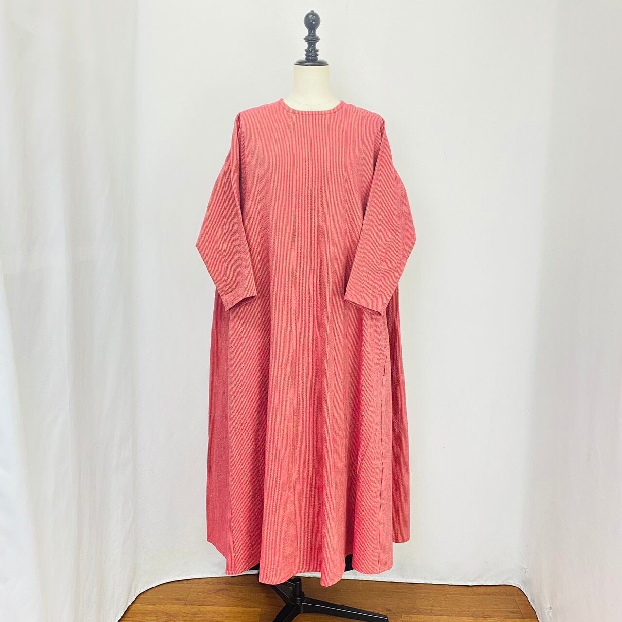 242010 サイドギャザーワンピース 5カラー 遠州織り 逆スラブストライプ 薄手
