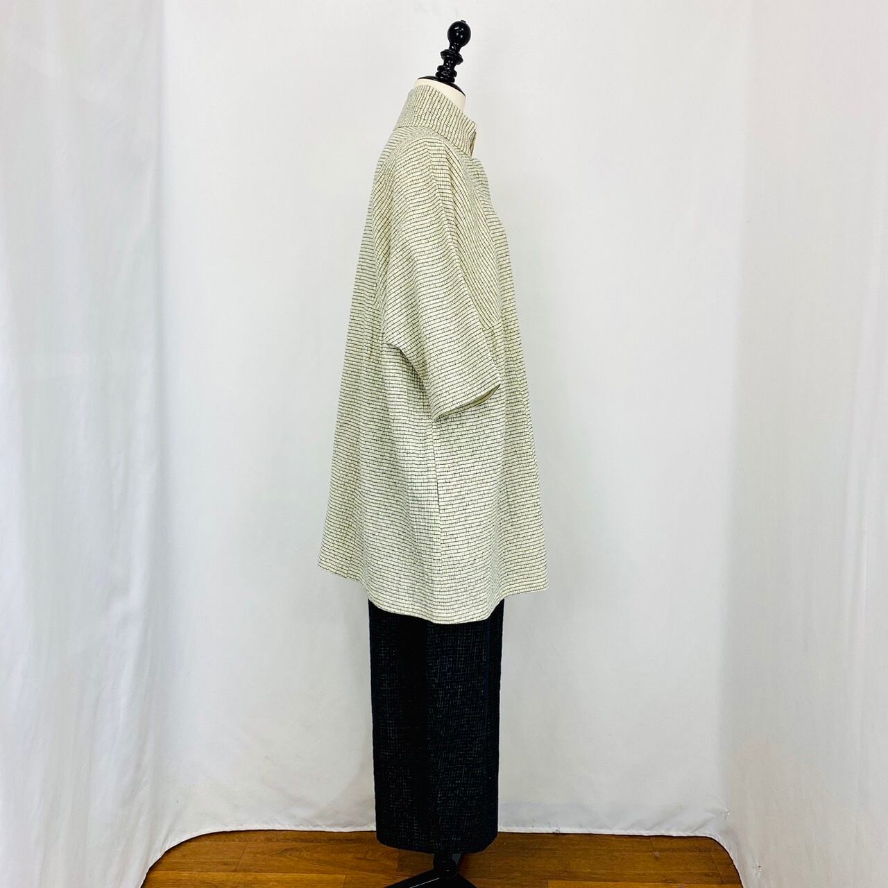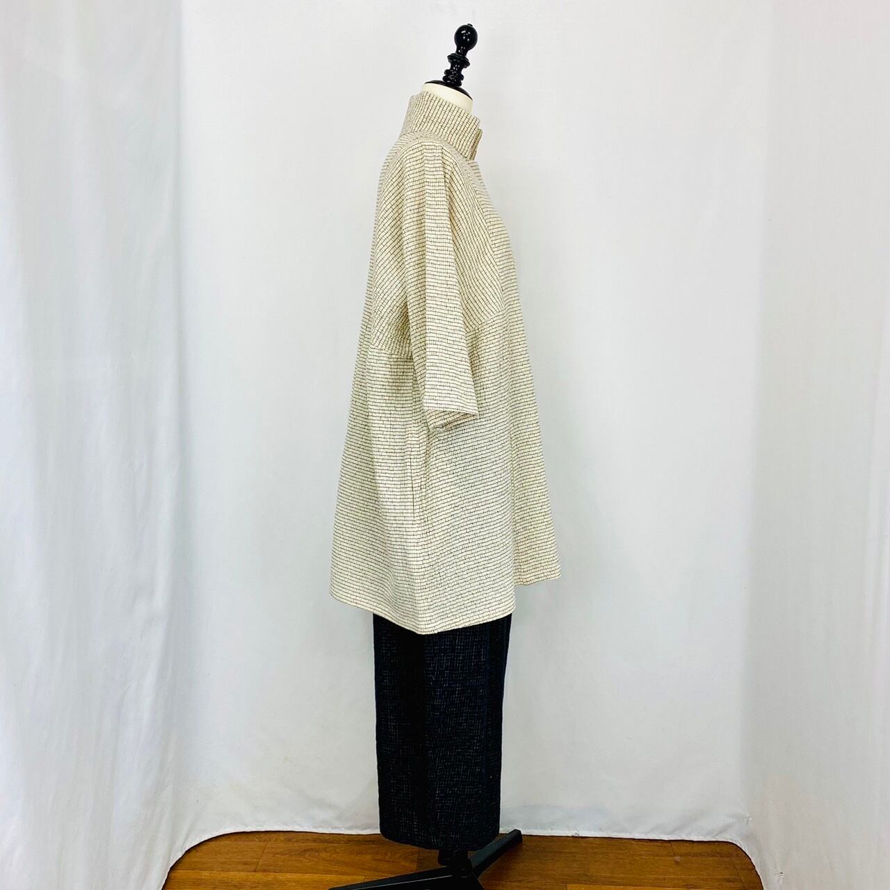 一枚で着たり、中にカットソーを着て重ね着したり、着回しができます。