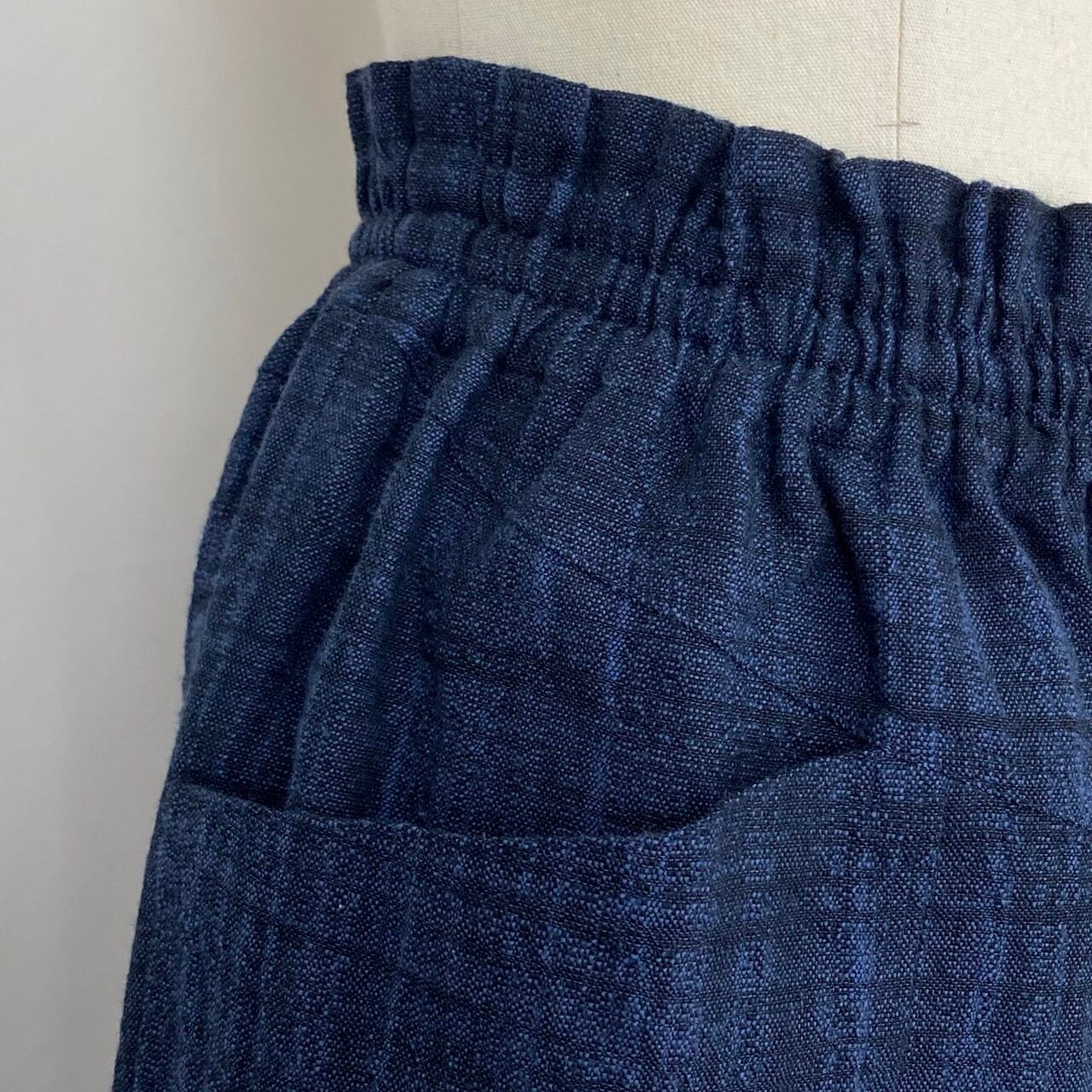 糸の太さがところどころ細くなっている逆スラブ糸や、白く染め残した絣(かすり)糸を使用することで、独特の表面感がある、ふっくらとした仕上がりの生地です。