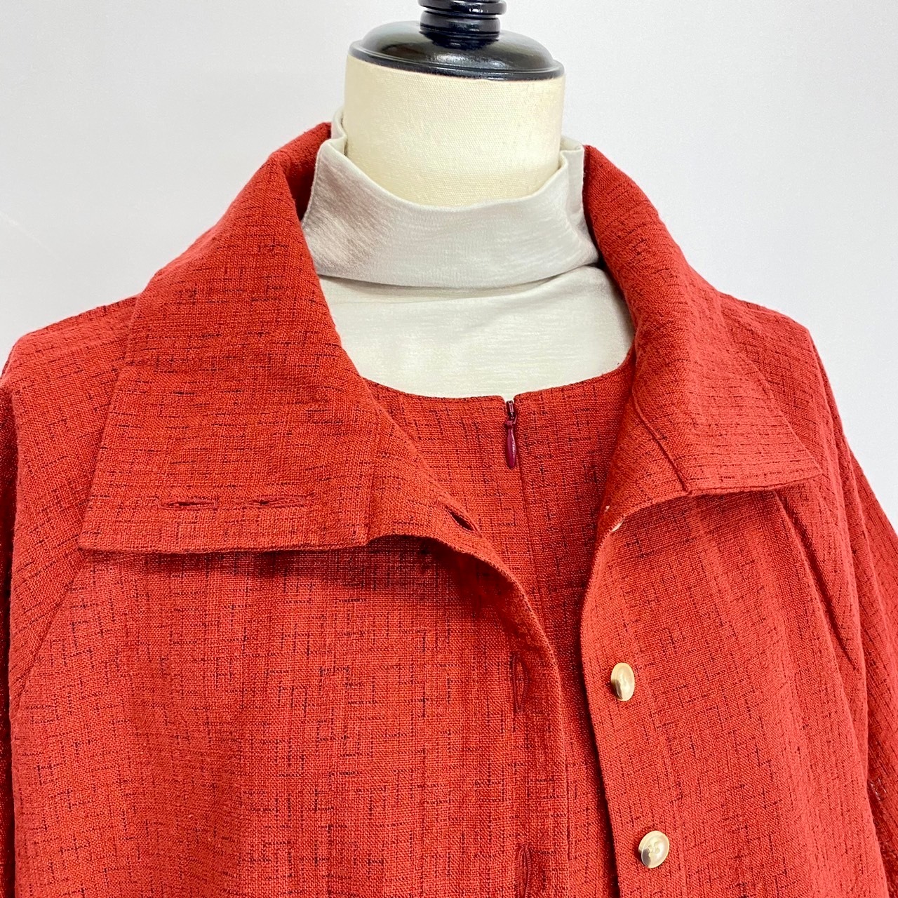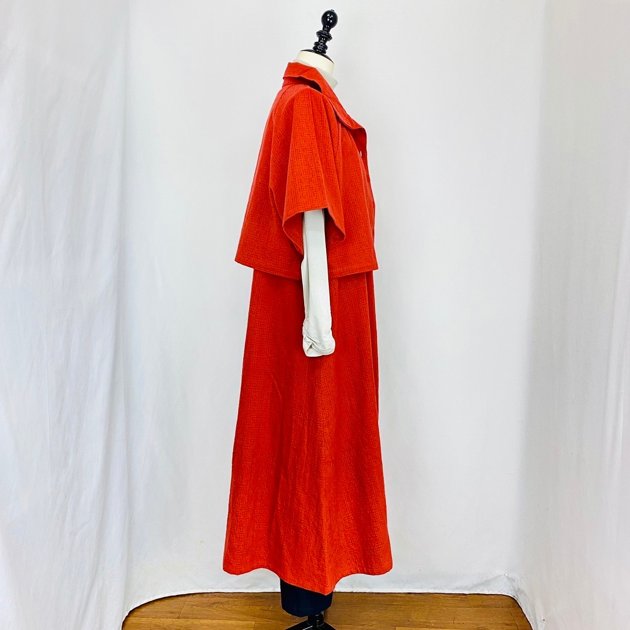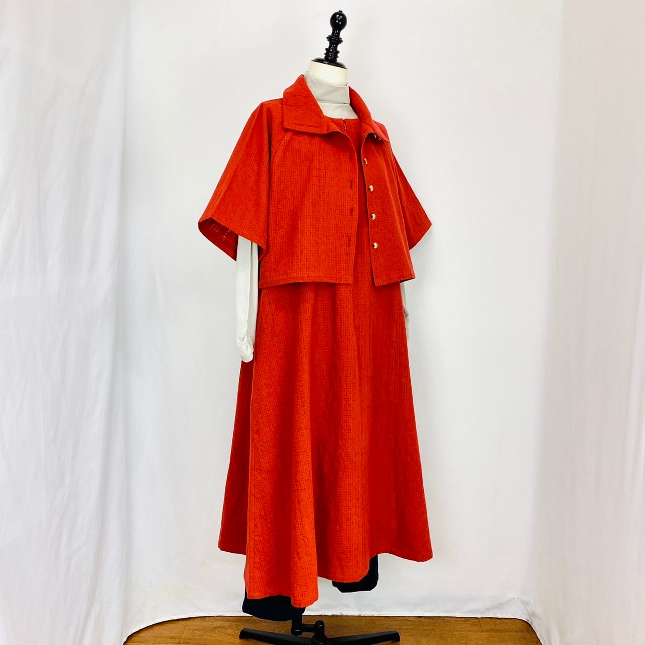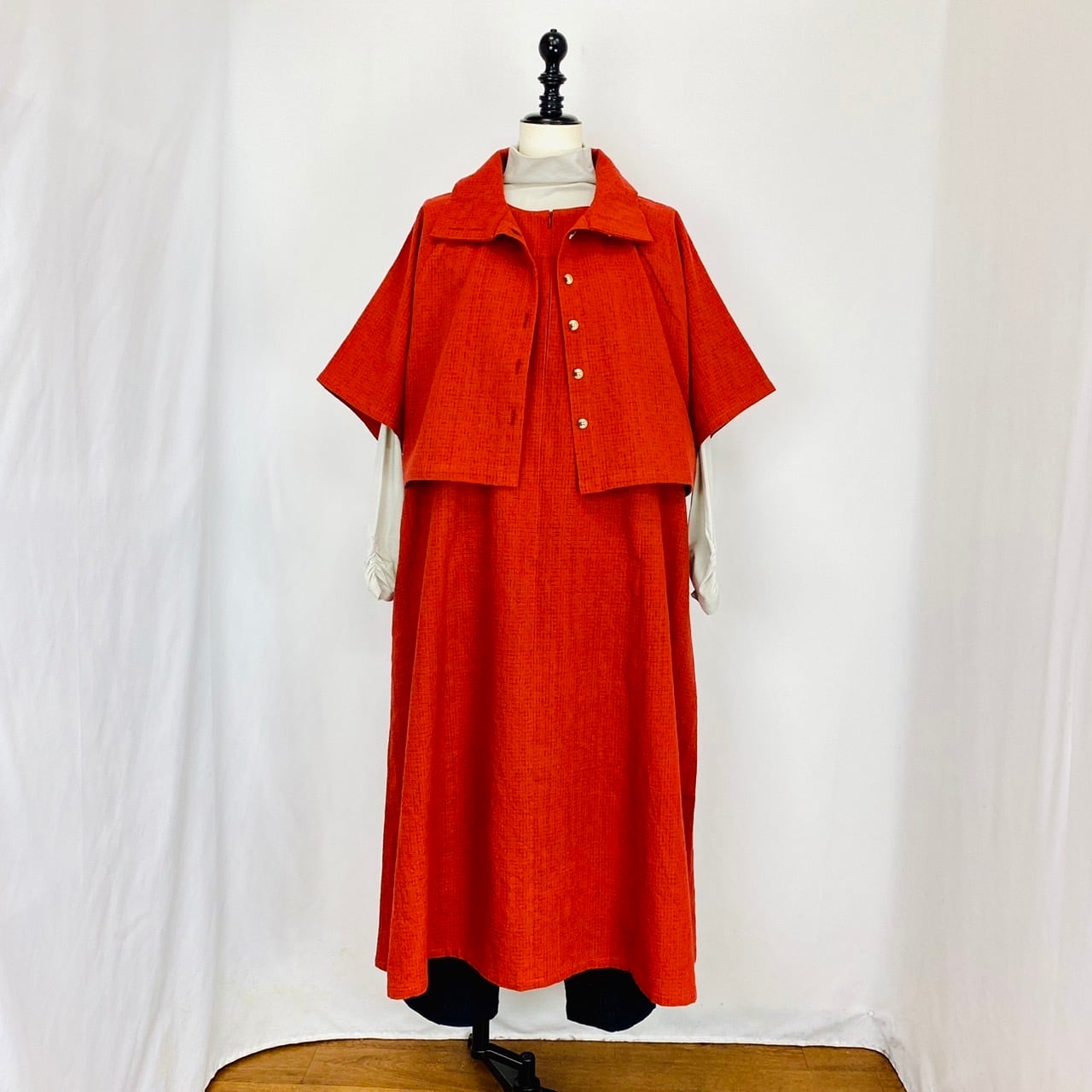 短い丈ですが、ジャンパースカートやワンピースの上から重ね着の羽織りとしても夏まで重宝すると思います。