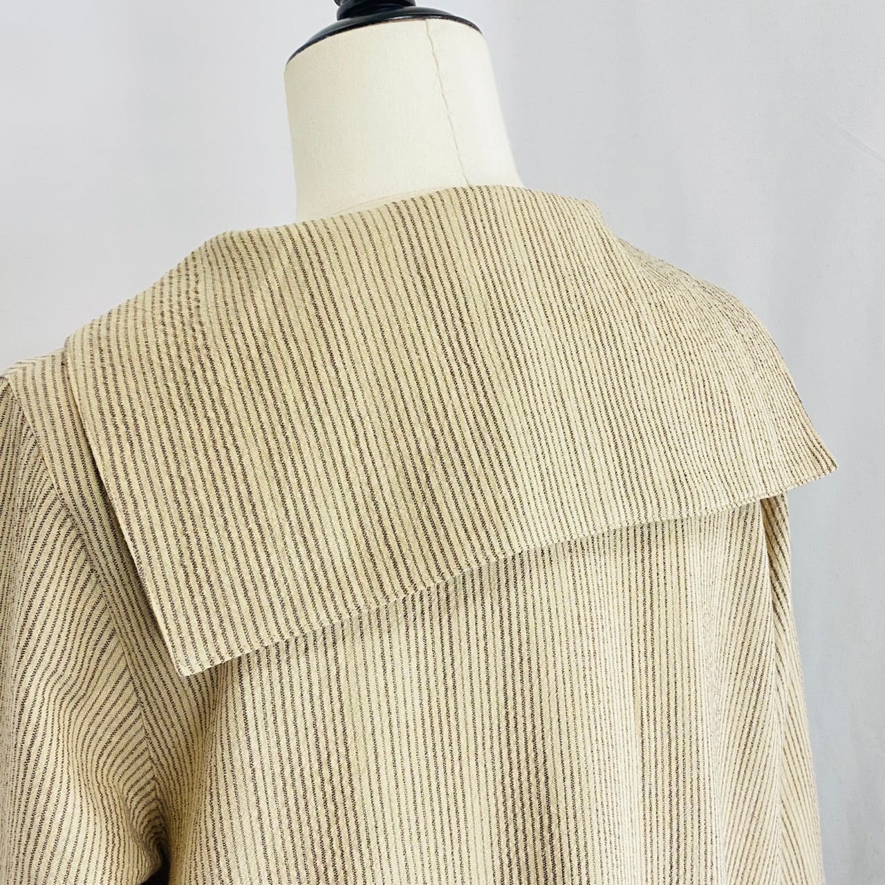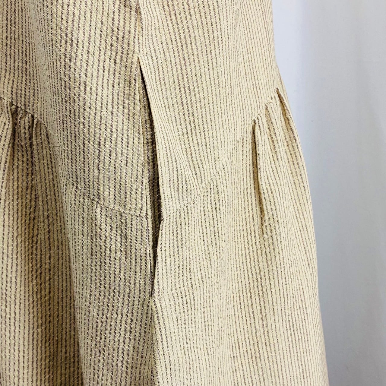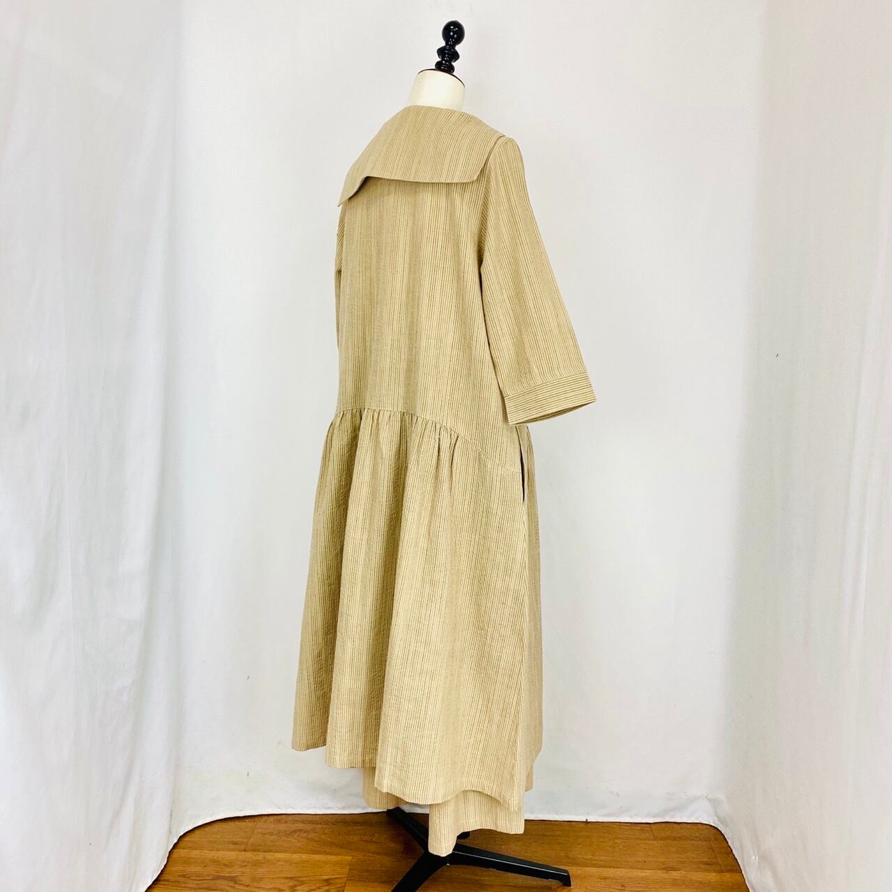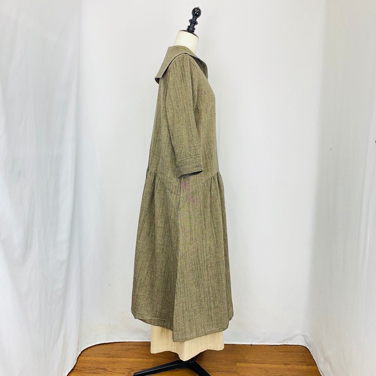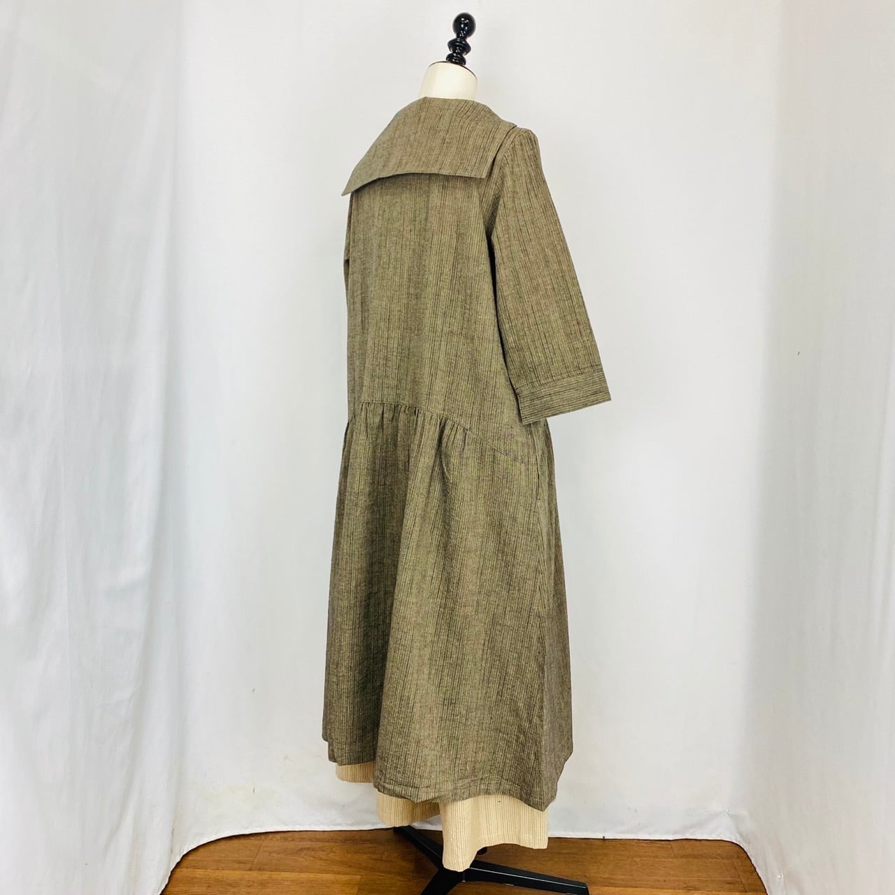 【再販】252010 セーラーカラーの切替ギャザーワンピース 2カラー 遠州織物 逆スラブストライプ うすで